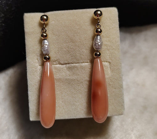 Angel Skin Coral and Rice Pearl Dangle